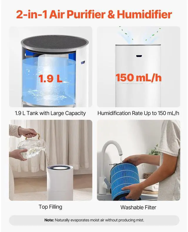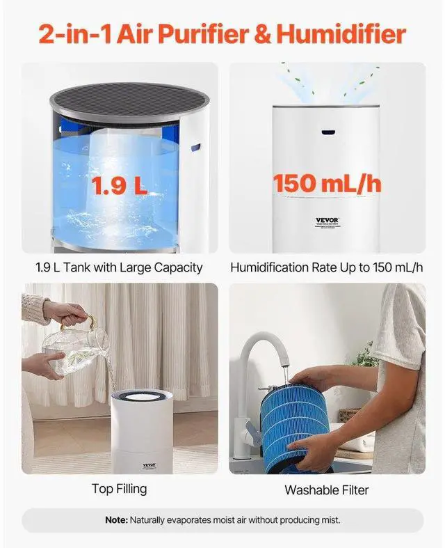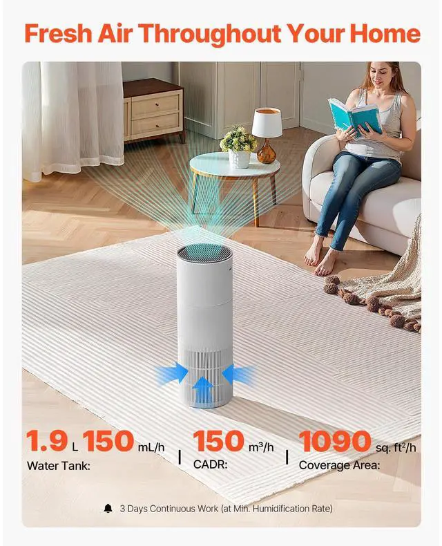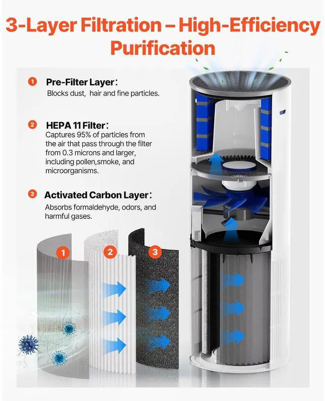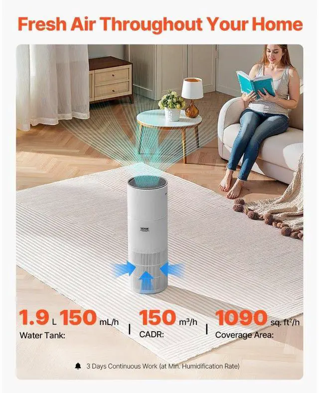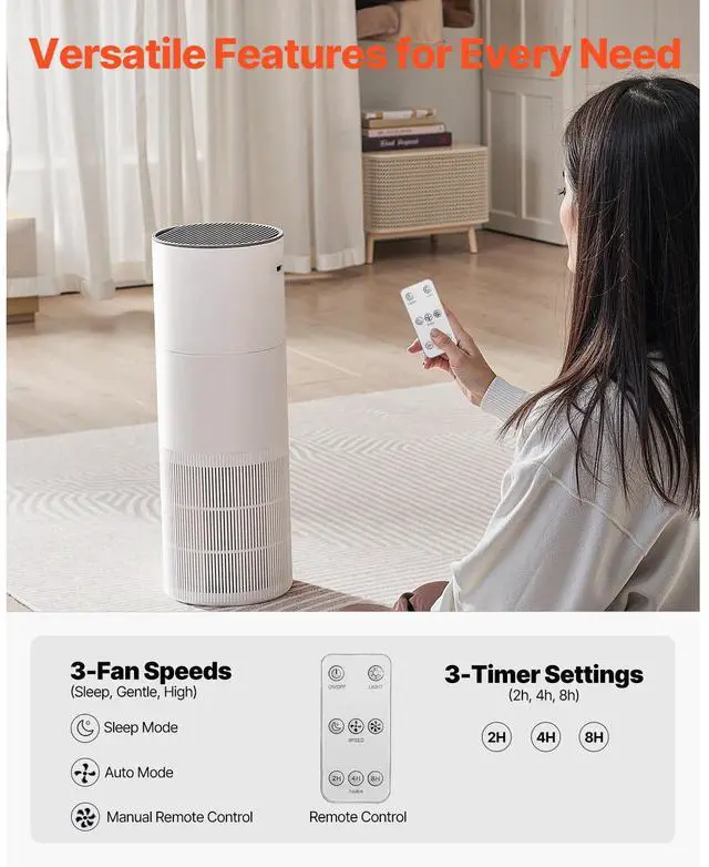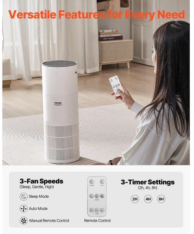 • VEVOR Air Purifier 1090 ft²/h True HEPA 11 Filter Air Cleaner for Home Large Room