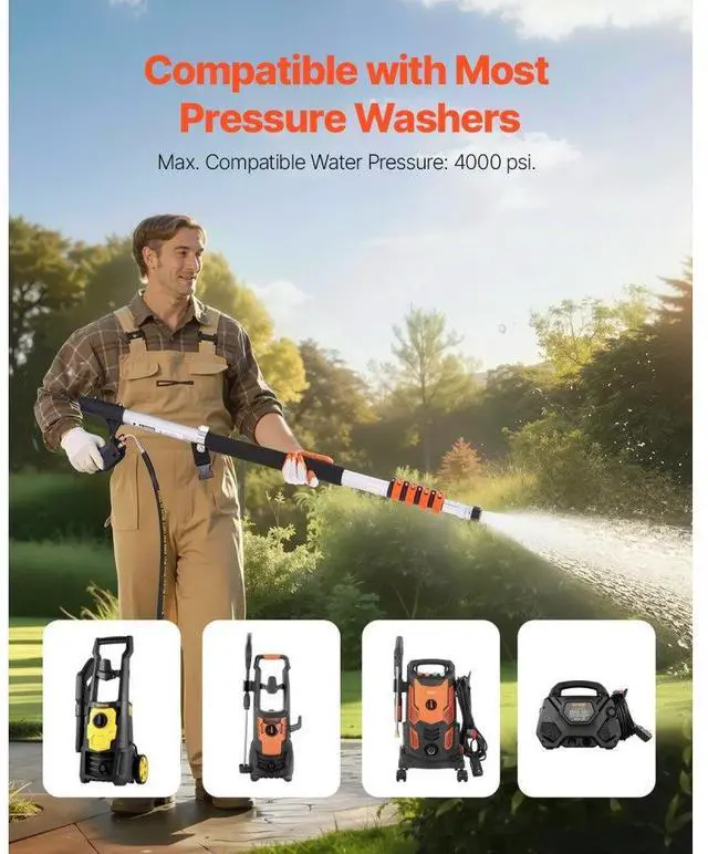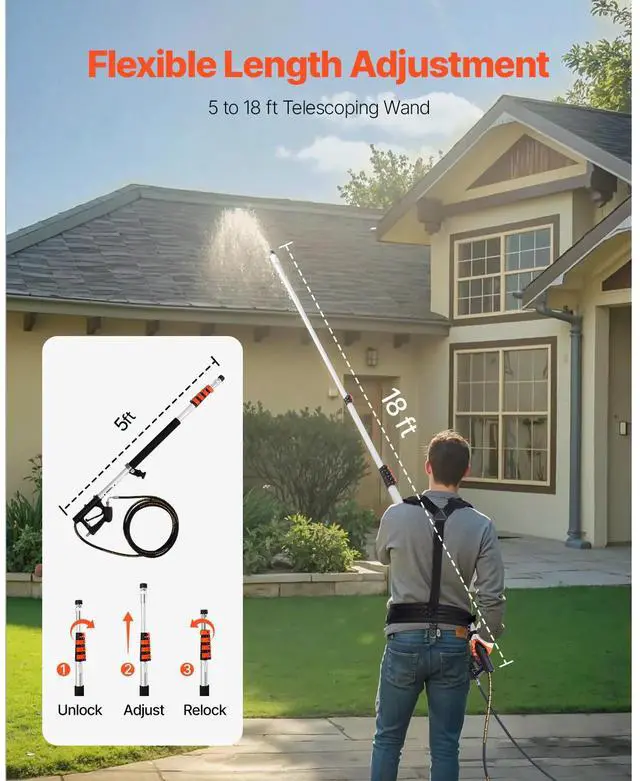 Pressure Washer Telescoping Wand 18 ft Brush Head Included Telescopic Spray Wand