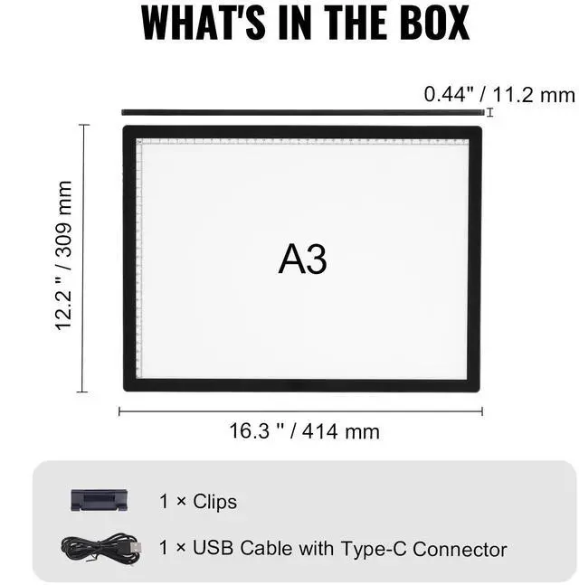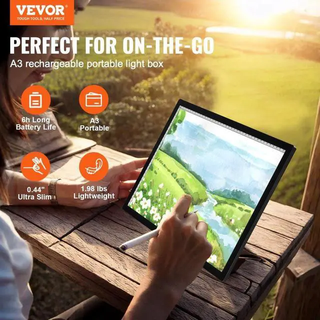 A3 LED Light Board Rechargeable Tracing Pad with 6 Level Dimmable Brightness