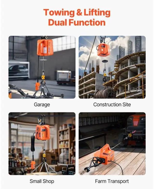3-in-1 Portable Electric Hoist Winch 1100LBS Wired/Wireless Remote Control