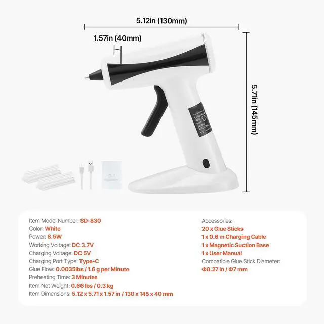 Compatible Glue Stick Diameter: 0.27 in / 7 mm