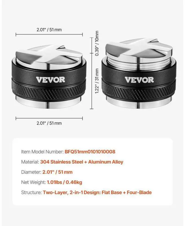 • VEVOR 51mm Coffee Distributor 2-in-1 Adjustable Espresso Distributor for Home