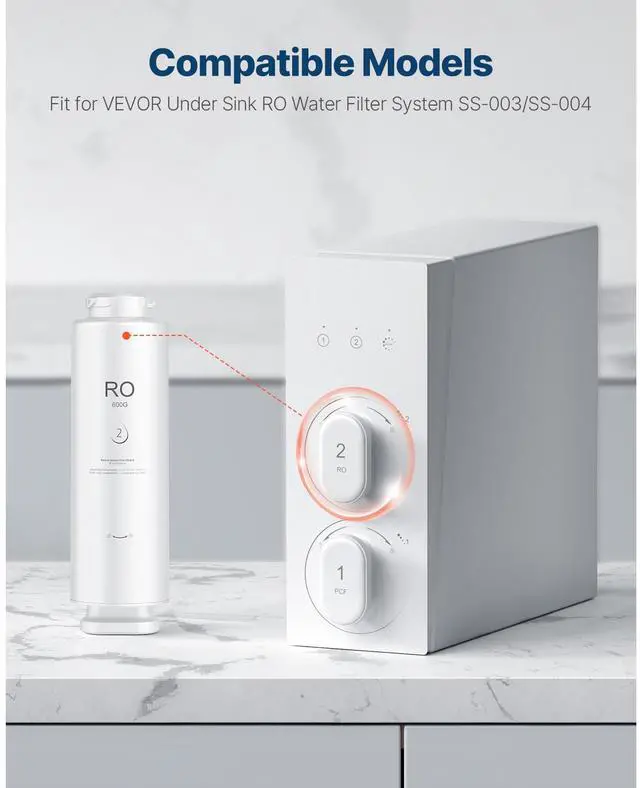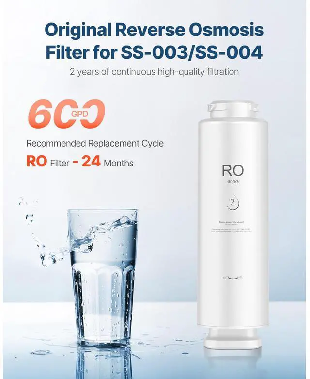 Optimal Water Temp: 41-100.4°F / 5-38°C,Item Model Number: SS-008,Features: RO Reverse Osmosis, 600 G Capacity,Interior: Premium RO Membrane Filter,Item Dimensions: 3.94 x 13.43 in / 100 x 341 mm,Item Net Weight: 2.78 lbs / 1.26 kg,Exterior: Plastic Housing,Lifespan: 24 Months or 8 Tons of Water
