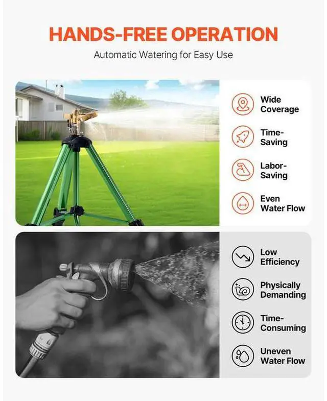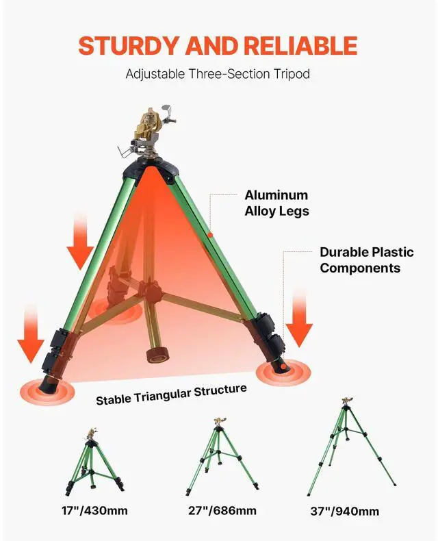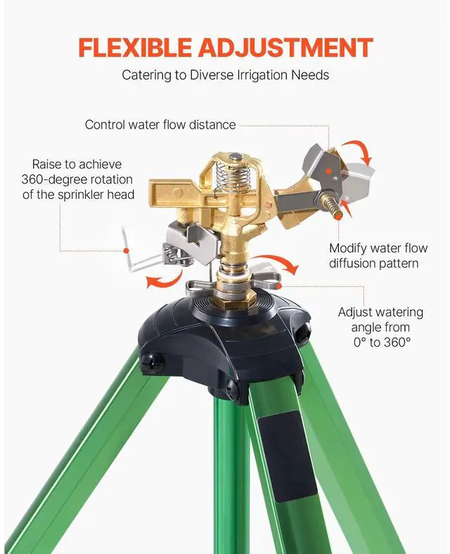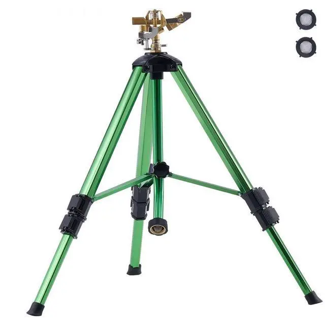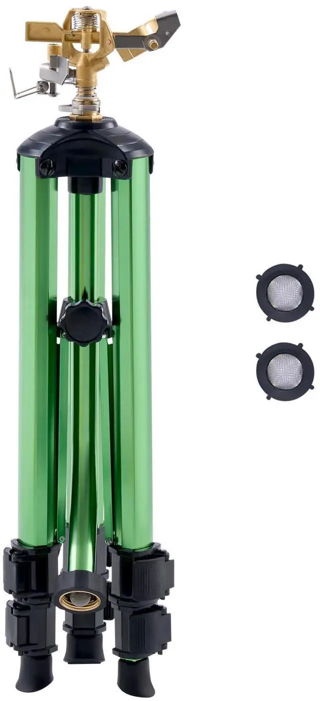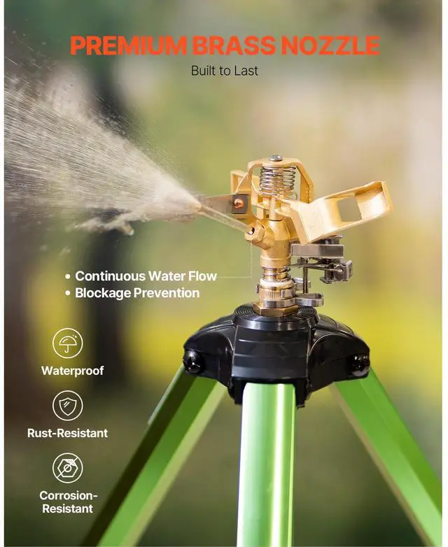 VEVOR Impact Sprinkler on Tripod Base, Heavy Duty Tripod Sprinklers with Brass Head & 3/4" Connector, 360 Degree Large Area Coverage Irrigation Sprinkler, Adjustable Heights Sprinkler for Yard Green