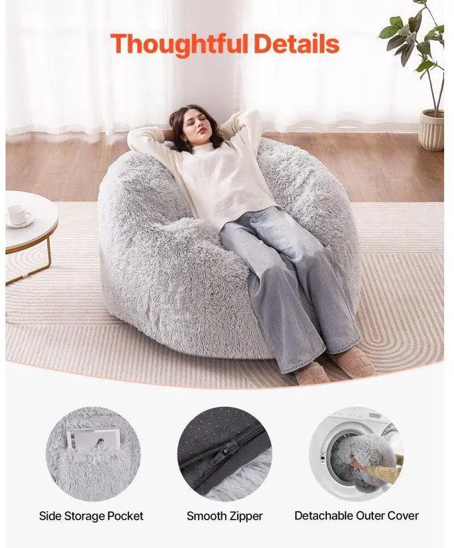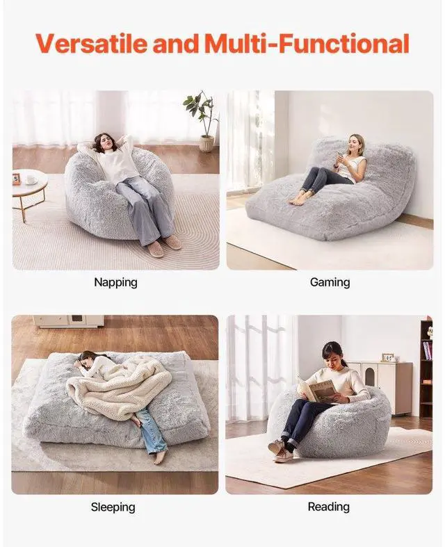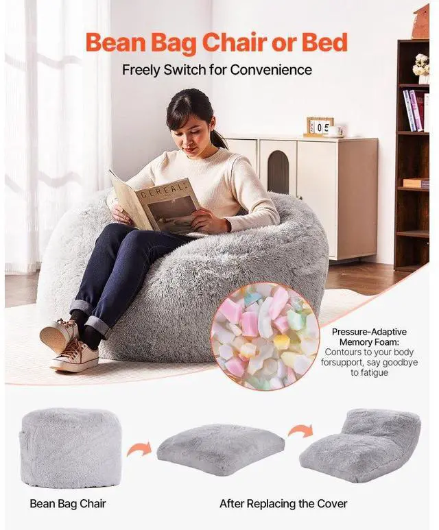Bean Bag Bed Chair Convertible from Chair to Lounge or Mattress Grey-Full