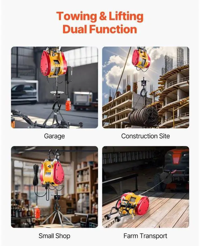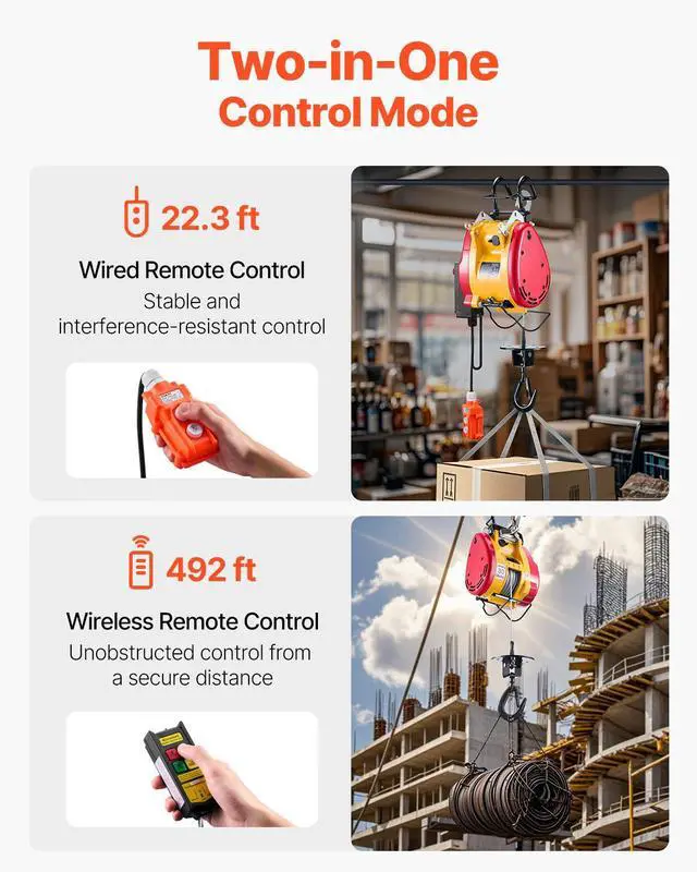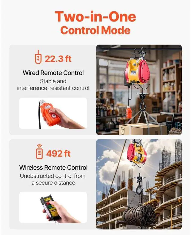 2-in-1 Portable Electric Hoist Winch 1100LBS Wired/Wireless Remote Control