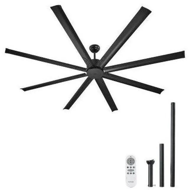 84" Aluminum Ceiling Fan No Light Remote Control Reversible DC Motor Black