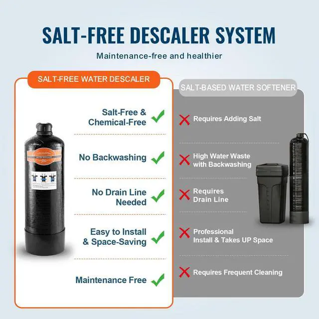 Whole House Salt Free Descaler Water Descaler System for 2-3 Person Family