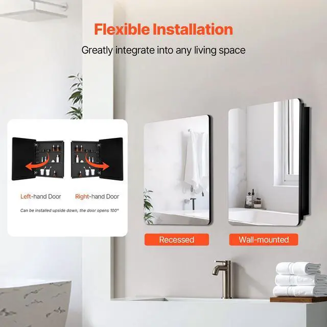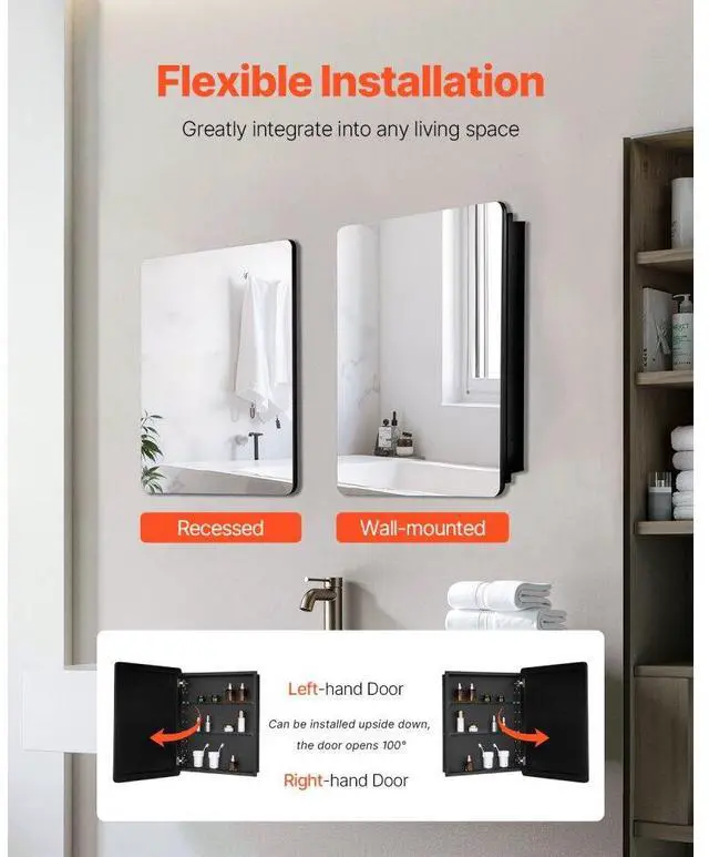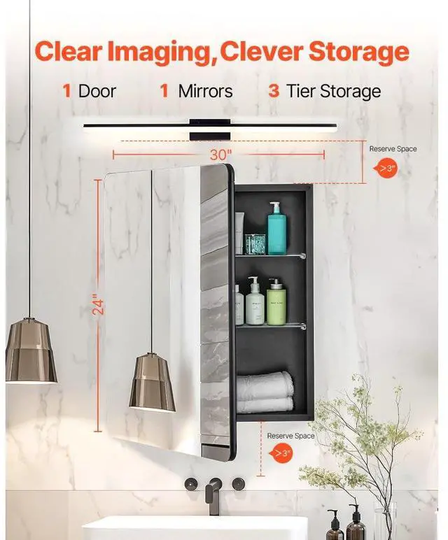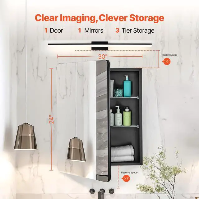 Medicine Cabinet 24" x 30" Mirror Medicine Cabinet Adjustable Shelves