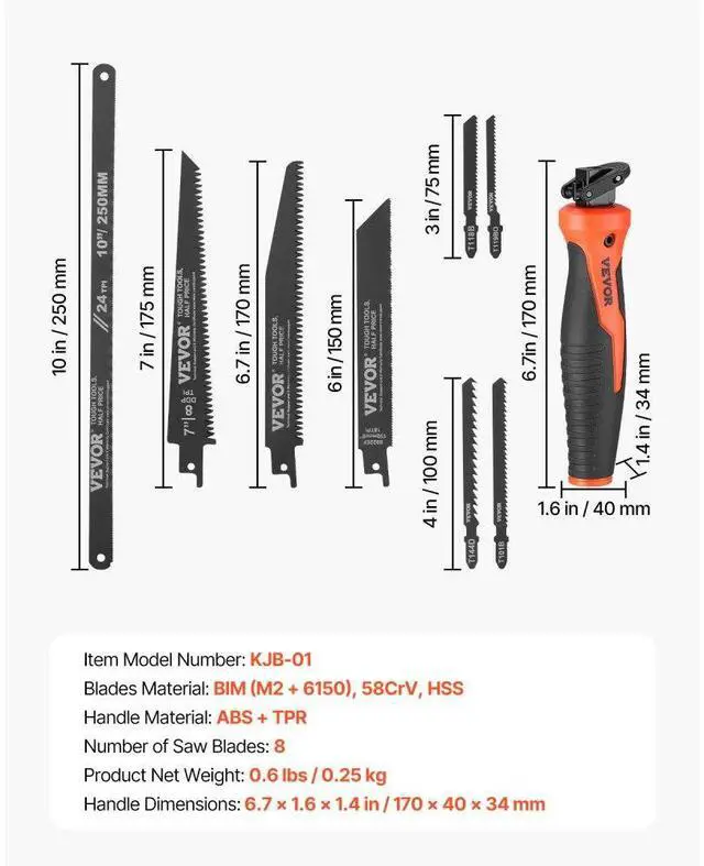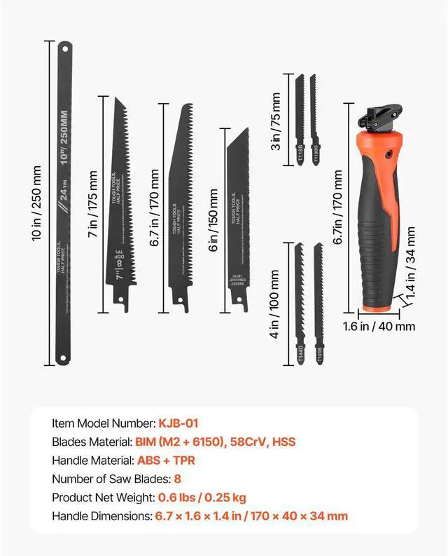 1 x Reciprocating Saw Blade: 6.7 x 0.8 x 0.04 in / 170 mm x 19 mm x 0.8 mm