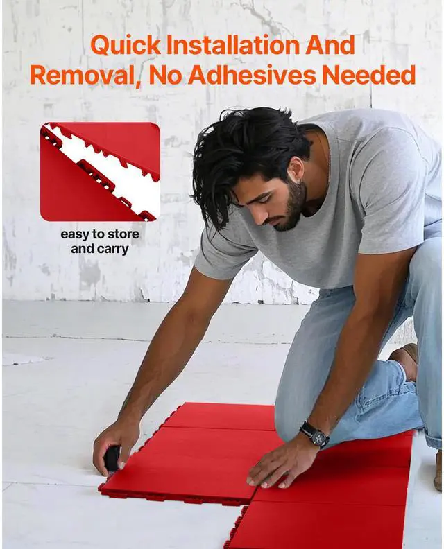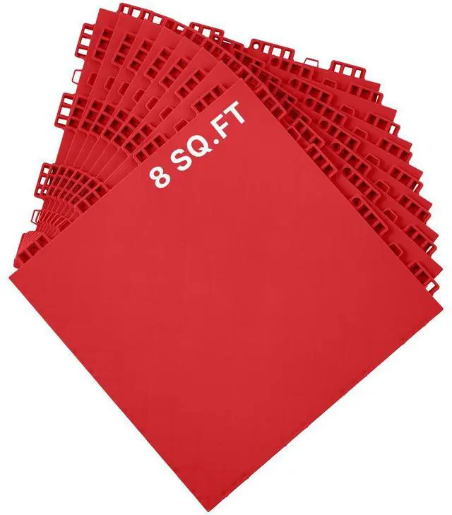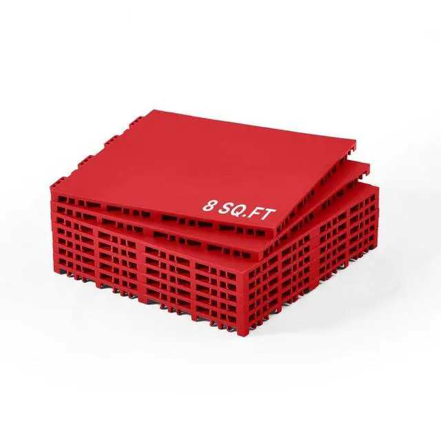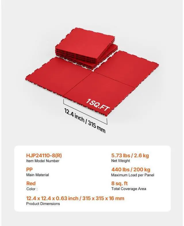 Total Coverage Area: 8 sq. ft,Color: Red,Item Model Number: HJP24110-8,Maximum Load per Panel: 440 lbs / 200 kg,Quantity: 8 pcs,Product Dimensions: 12.4 x 12.4 x 0.63 inch / 315 x 315 x 16 mm,Net Weight: 5.73 lbs / 2.6 kg,Main Material: PP