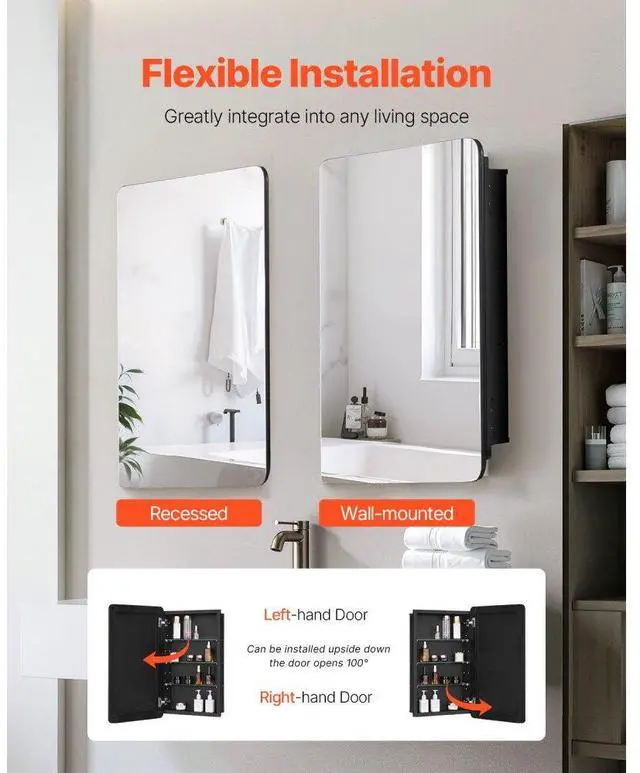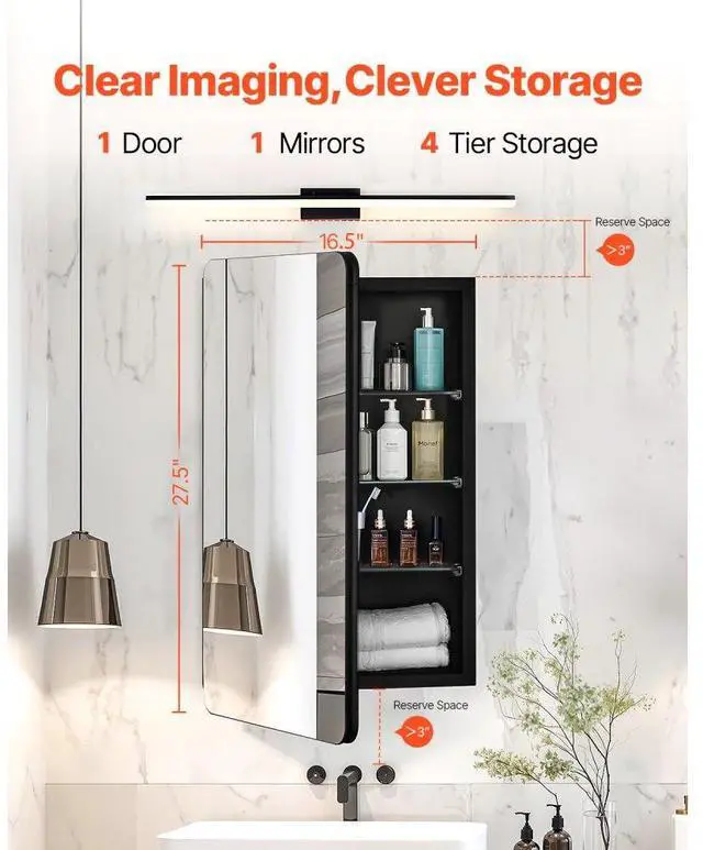 Medicine Cabinet 16.5" x 27.5" Mirror Medicine Cabinet Adjustable Shelves