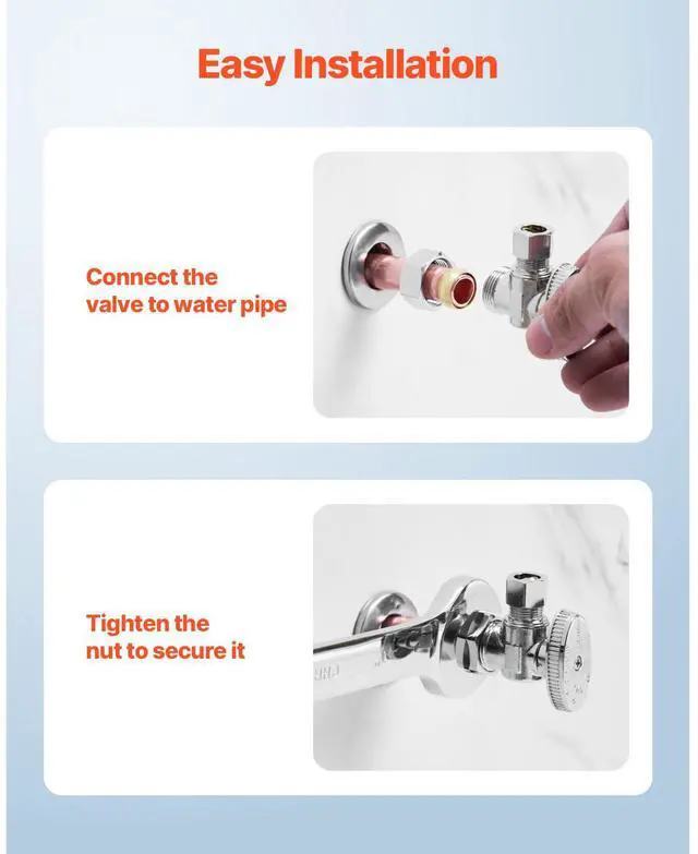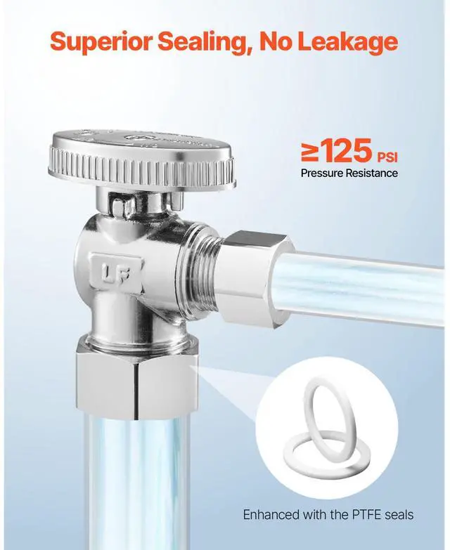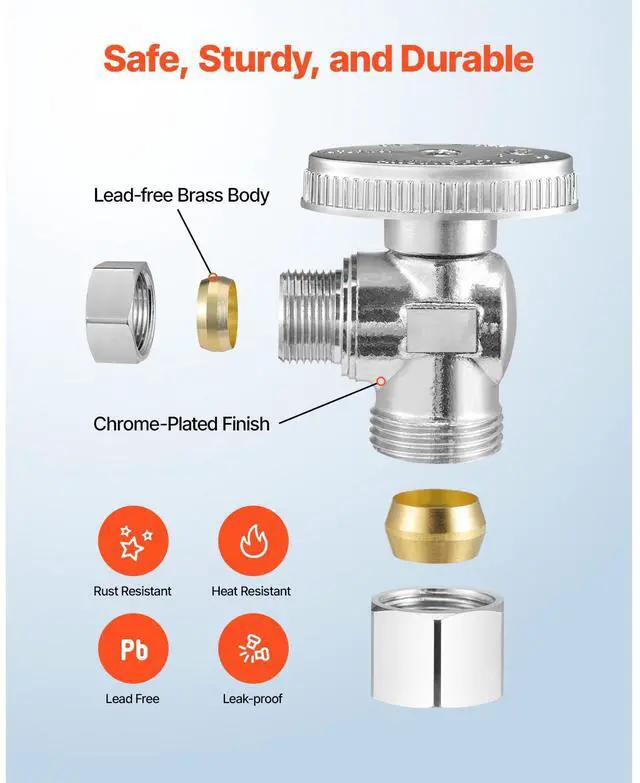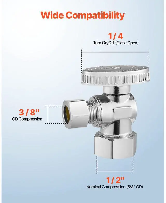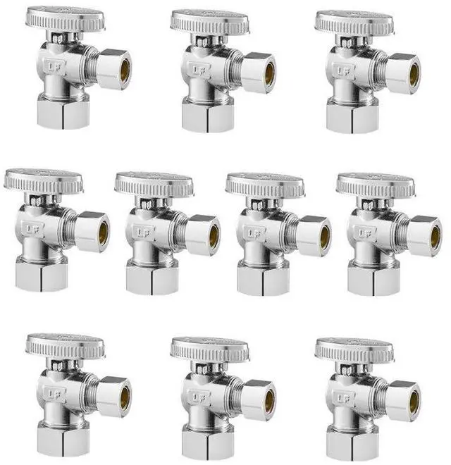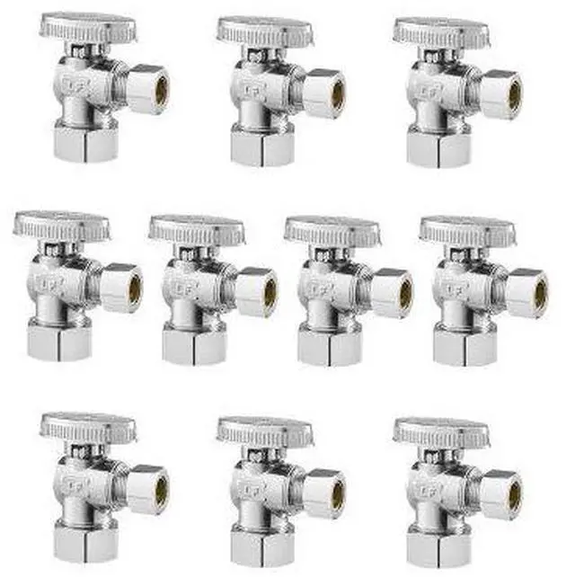 • VEVOR 10-Pack Angle Stop Valve 1/4 Turn 5/8" OD (1/2" NOM) x 3/8" OD Compression