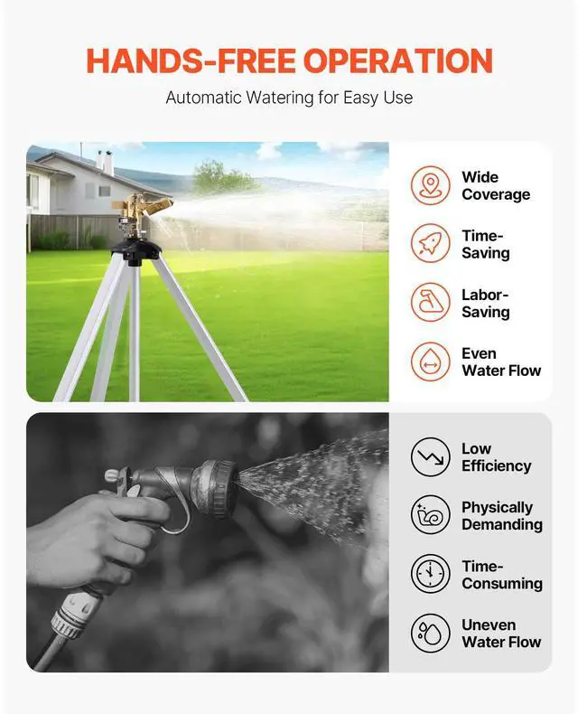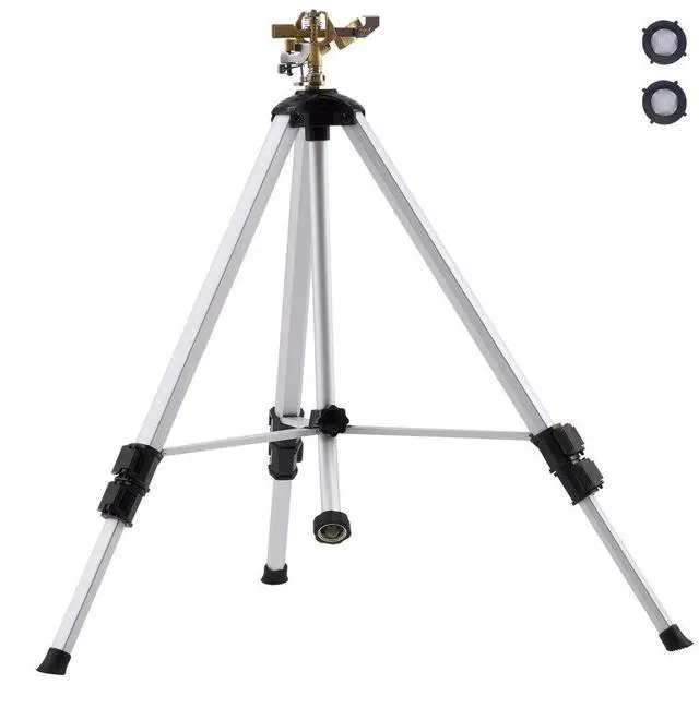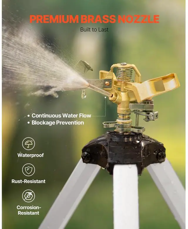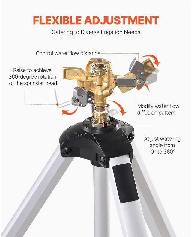 VEVOR Impact Sprinkler on Tripod Base, Heavy Duty Tripod Sprinklers with Brass Head & 3/4" Connector, 360 Degree Large Area Coverage Irrigation Sprinkler, Adjustable Heights Sprinkler for Yard Gray