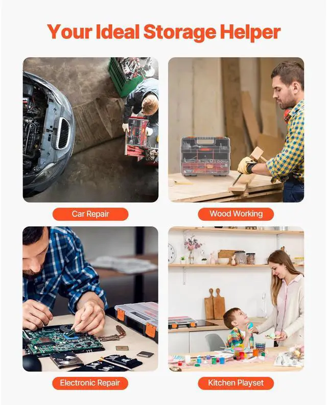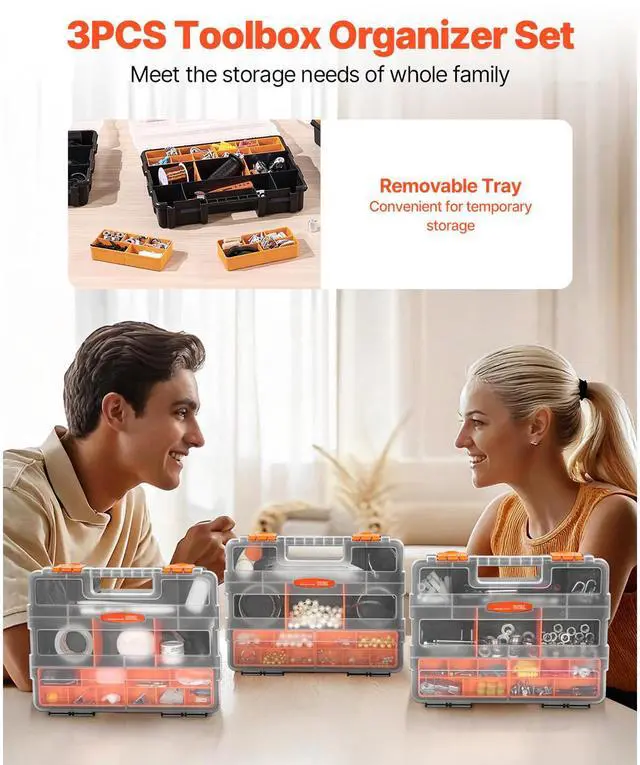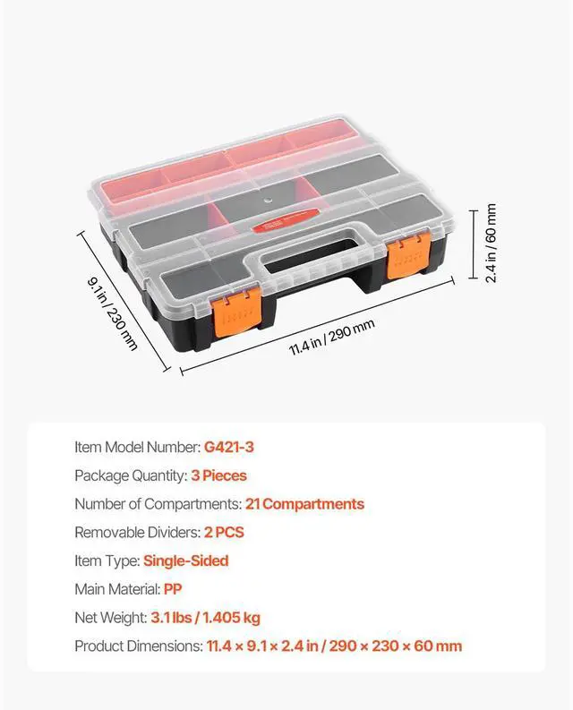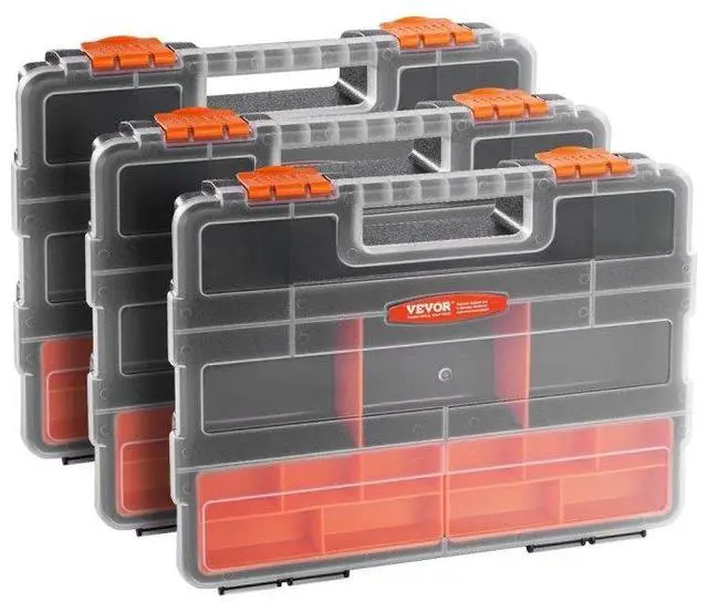 Single sided3-Pack Small Parts Organizer 21-Compartment Organizer Box with Removable Divider
