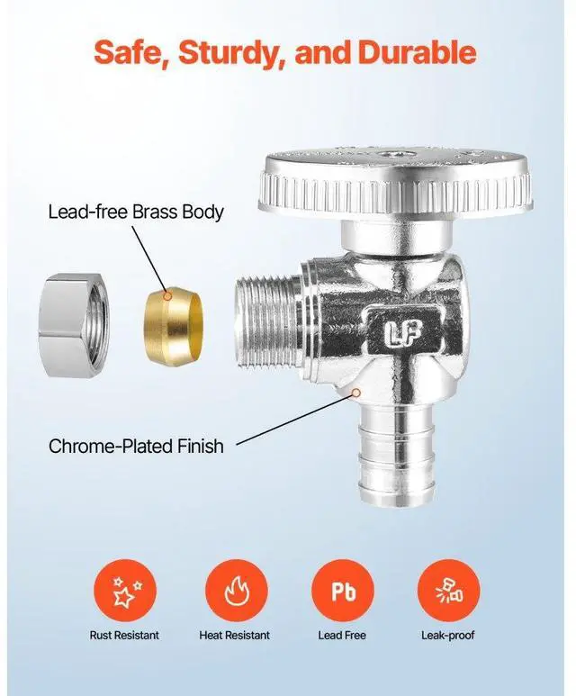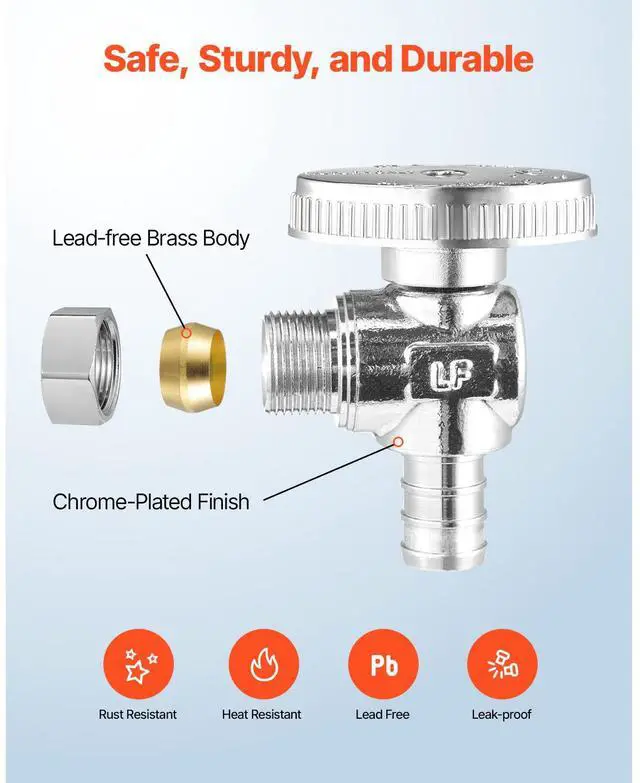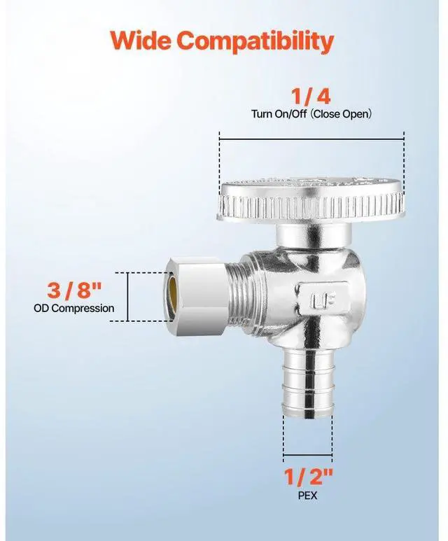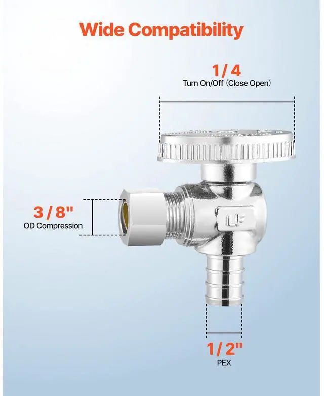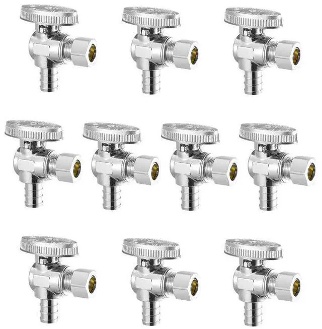 10 Pack Angle Stop Valve 1/2" PEX x 3/8" OD Compression 1/4 Turn Shut Off Valves