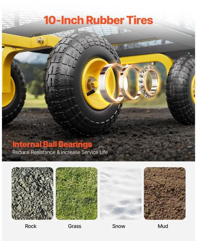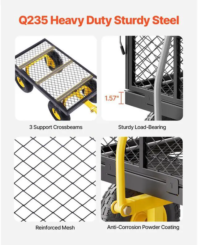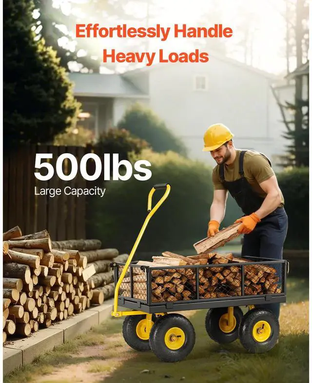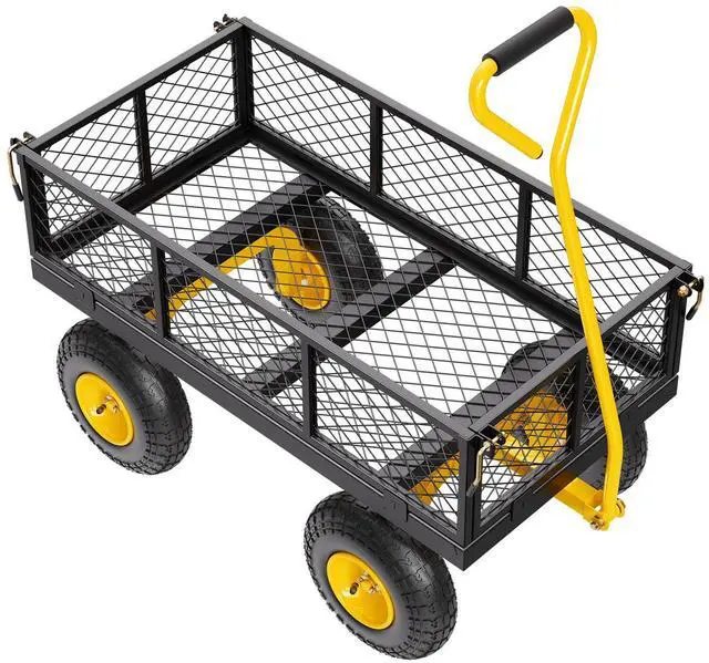 Vevor 500 Lbs Steel Garden Cart, Heavy Duty Pullable Cart with Wheels for Garden, Metal Yard Utility Wagon with 10" All Terrain Tires, Removable Mesh Sides and 180° Rotating Handle