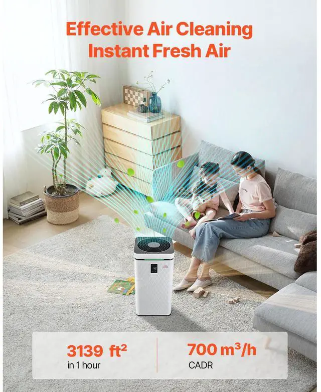 3139 ft²/h Air Purifier H13 HEPA Smart Air Purifier for Home & Office