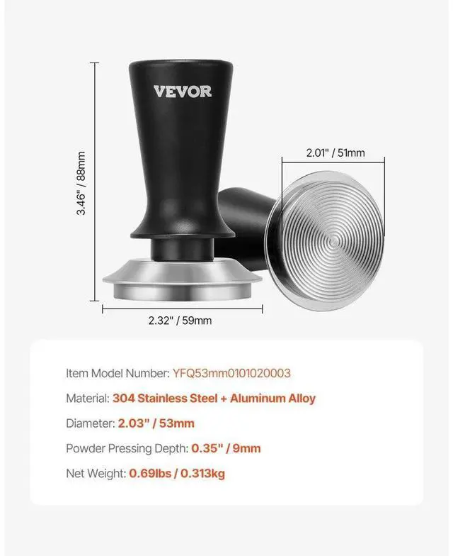 Item Model Number: YFQ51mm0101020001,Material: 304 Stainless Steel + Aluminum Alloy,Powder Pressing Depth: 0.35" / 9mm,Net Weight: 0.67 lbs / 0.304 kg,Diameter: 2.01" / 51 mm