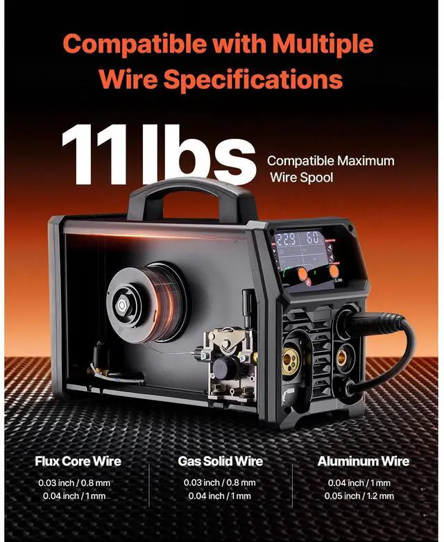 Welding Thickness: 0.59 inch ( 15 mm),Compatible Maximum Wire Spool: 11 lbs / 5 kg,Output Current: 200A,Item Model Number: MIG-200AU,Product Weight: 27.3 lbs / 12.4 kg (Include All Accessories),Flux Core/ Solid Wire: 0.03 inch / 0.8 mm, 0.04 inch / 1 mm,Functions: Gasless MIG, Gas MIG, MMA, Lift TIG, AU TIG,Aluminum Wire: 0.04 inch / 1 mm, 0.05 inch / 1.2 mm,Product Dimensions: 16.9 x 7.1 x 12.6 inch / 430 x 180 x 320 mm,Compatible Wire Types: Flux Core Wire / Gas Solid Wire / Aluminum Wire,Input Capacity: 6.1 KVA,Compatible Wire Diameter: