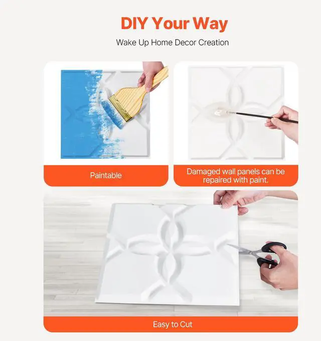 3D Wall Panels 33-Pack 11.81 x 11.81'' PVC 32 Sq.Ft Coverage Floral Matte White