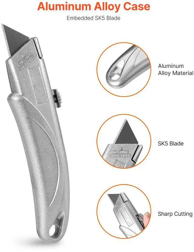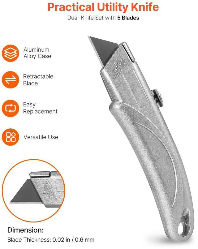 VEVOR Utility Knife Retractable Box Cutter with SK5 Sharp Blades Quick Change