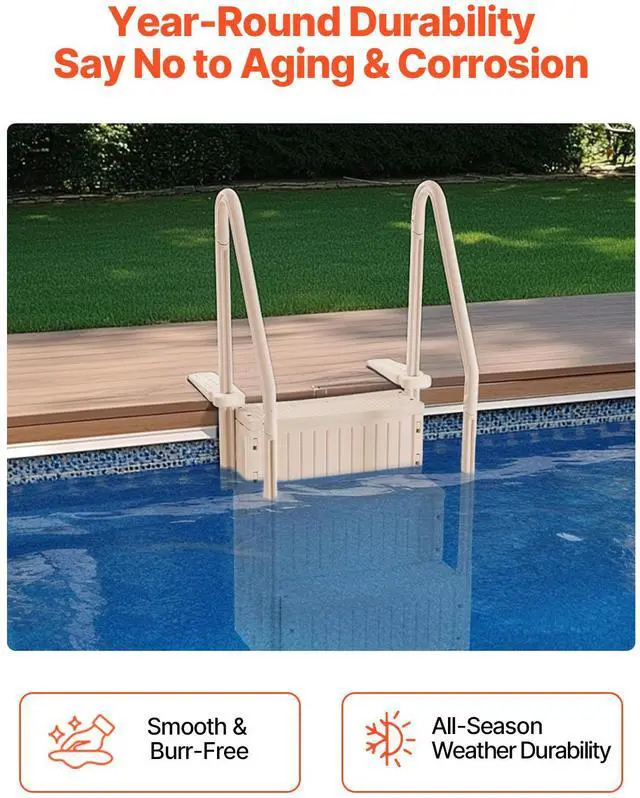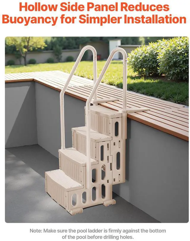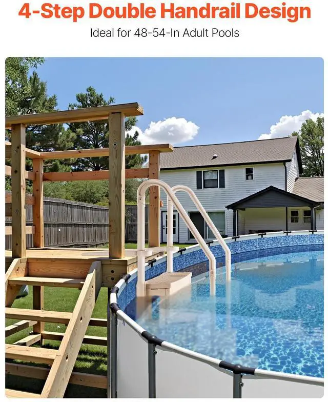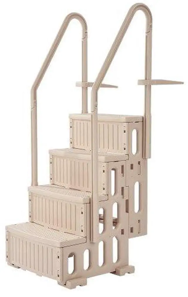 4-Step Taupe Pool Ladder of Double Handrails Supports 400 lb for 48-54 In Pools