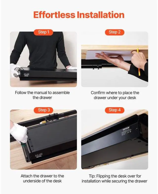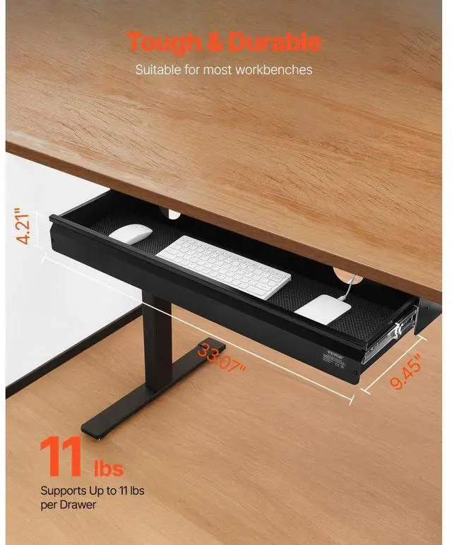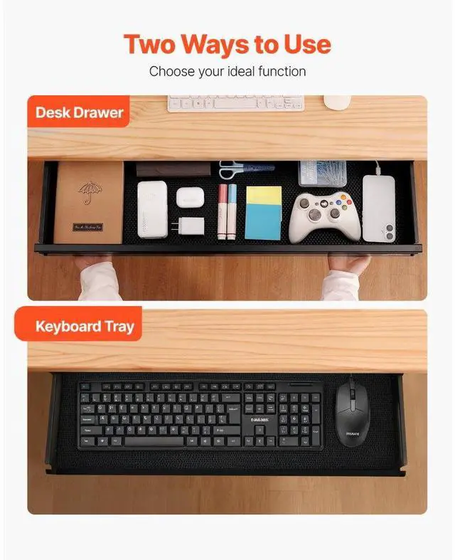 33 in Under Desk Drawer Organizer Slide-out Drawer Space Saver for Home Office