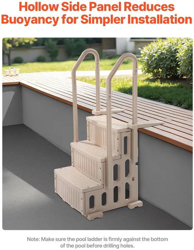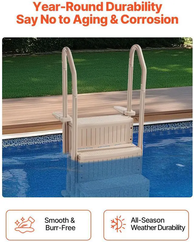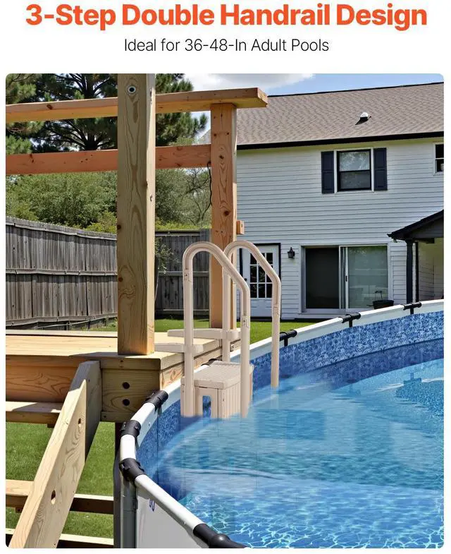 VEVOR 3-Step Taupe Pool Ladder of Double Handrails Supports 400 lb for 36-48 In Pools
