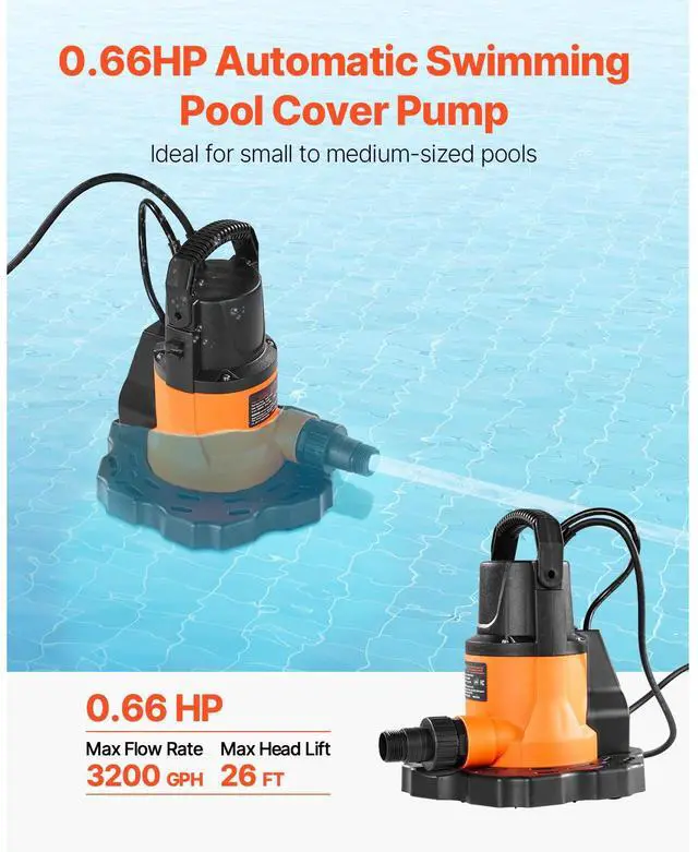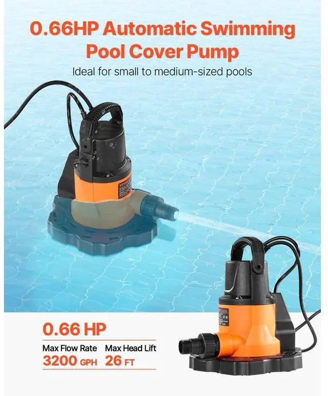 Automatic Pool Cover Pump Submersible Swimming 0.66 HP 3200 GPH 25 ft Cord