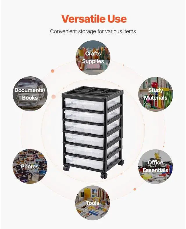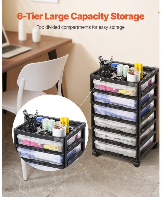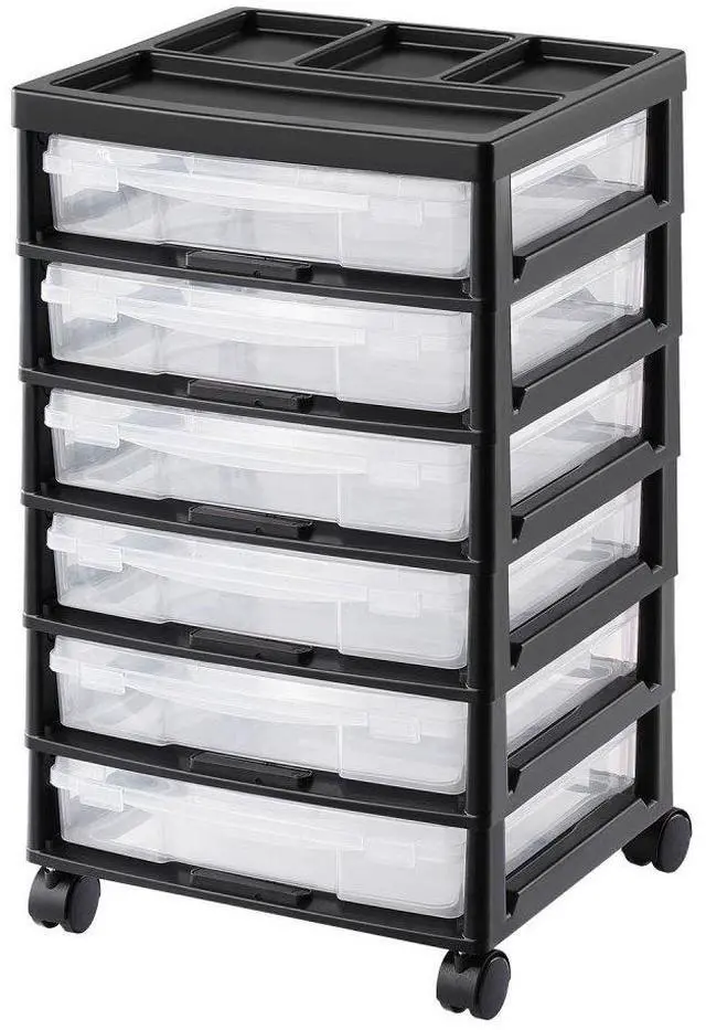 Scrapbook Rolling Storage Cart 6-Tier Large Capacity with 6 Clear Cases Black