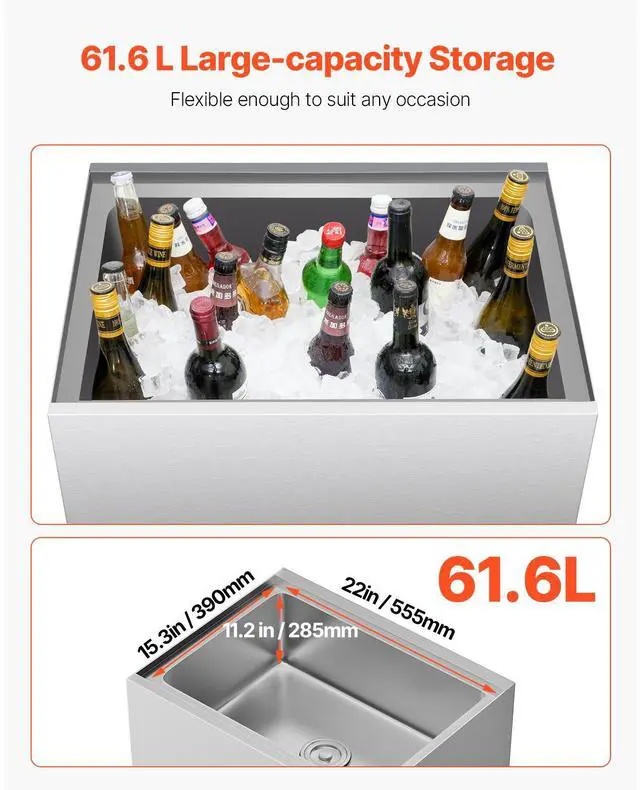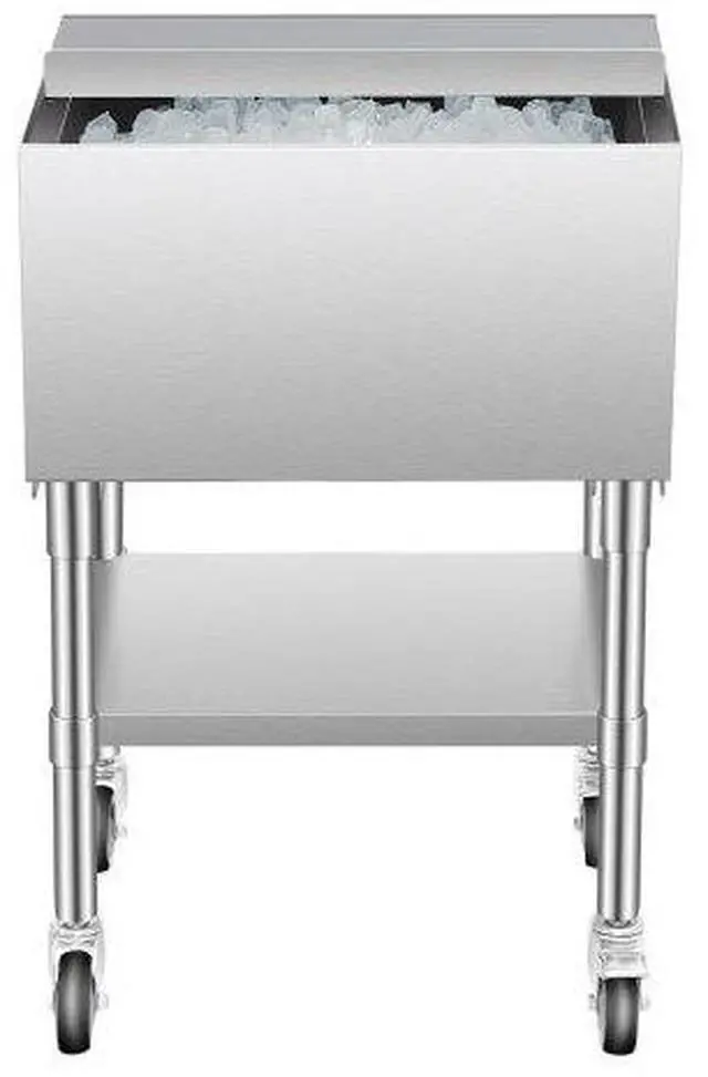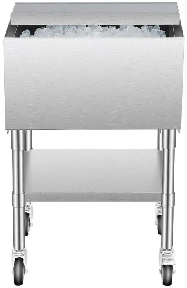 Commercial Ice Bin 61.6 L Rolling Ice Chest on Wheels with Bottom Storage Tray