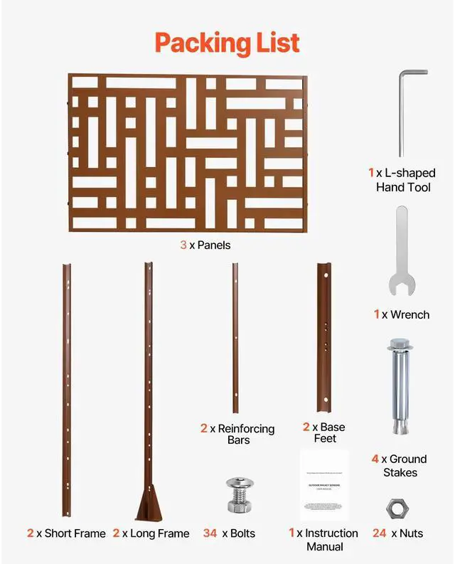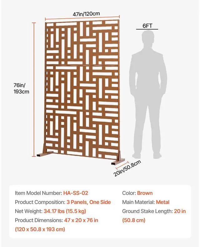 Color: Brown,Item Model Number: HA-SS-02,Ground Stake Length: 20 in (50.8 cm),Product Composition: 3 Panels, One Side,Product Dimensions: 47 x 20 x 76 in (120 x 50.8 x 193 cm),Net Weight: 34.17 lbs (15.5 kg),Main Material: Metal