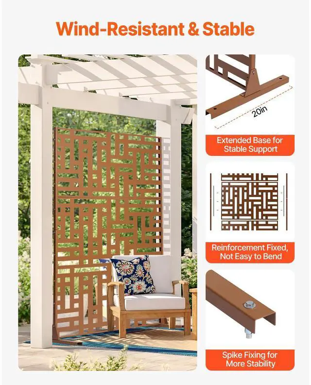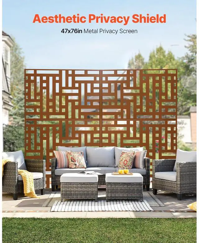 Metal Privacy Screen 47"x76" Outdoor Privacy Screens & Panels for Patio Brown