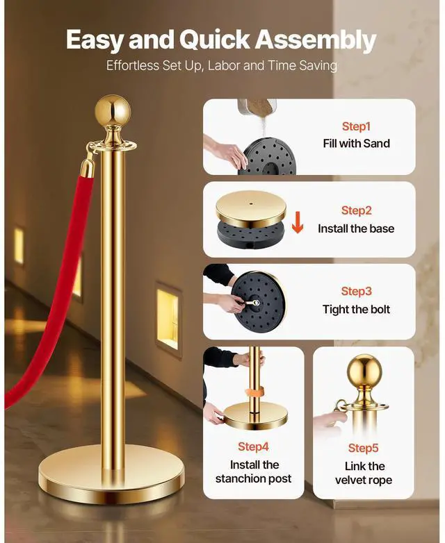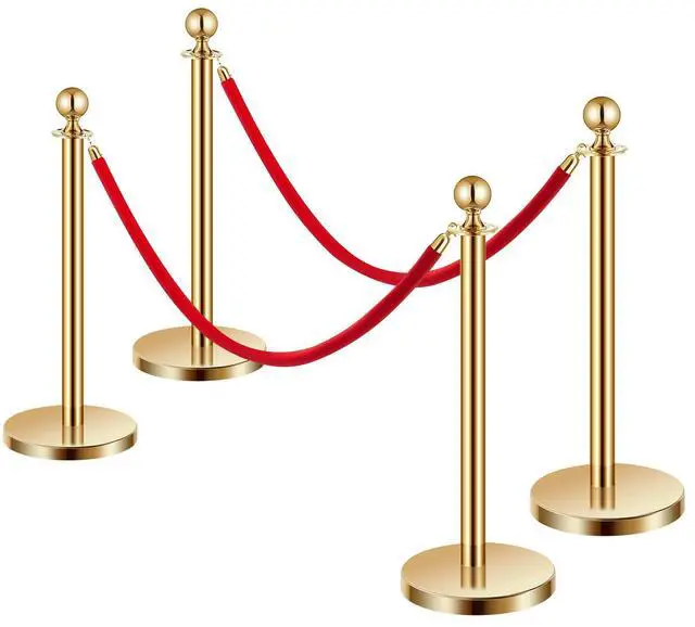 • VEVOR EVOR Stanchions and Velvet Ropes 4Pcs, Hollow Base with Stainless Steel Post, 2 Red Velvet Ropes and Posts, Crowd Control Barriers Gold Stanchions, Red Carpet Runner Poles for Party Supplies