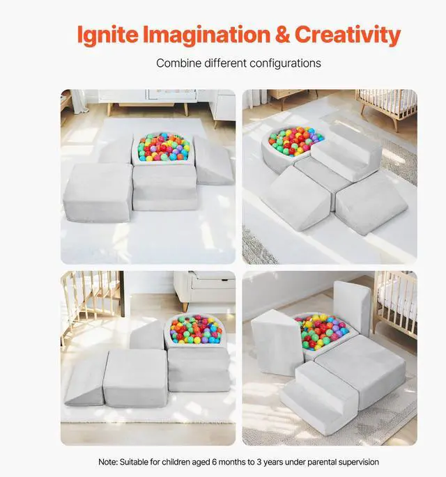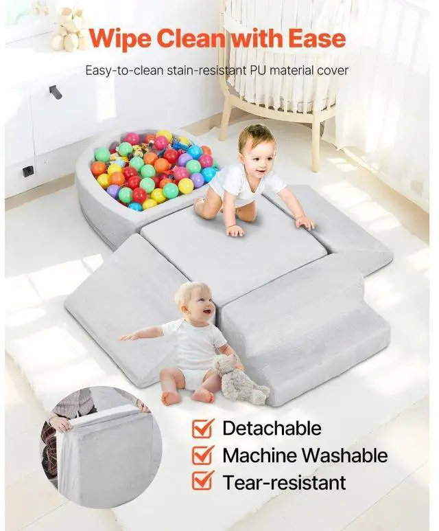 Climbing Toys 5 Piece Foam Climbing Blocks Set with Ball Pit for Toddlers