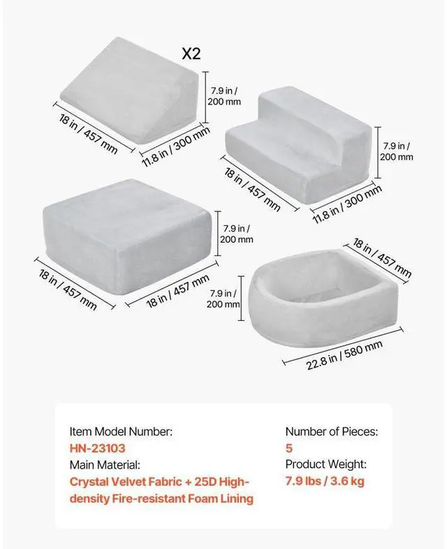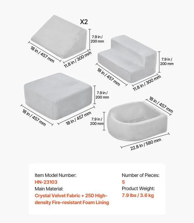 Number of Pieces: 5,Item Model Number: HN-23103,Product Weight: 7.9 lbs / 3.6 kg,Main Material: Crystal Velvet Fabric + 25D High-density Fire-resistant Foam Lining