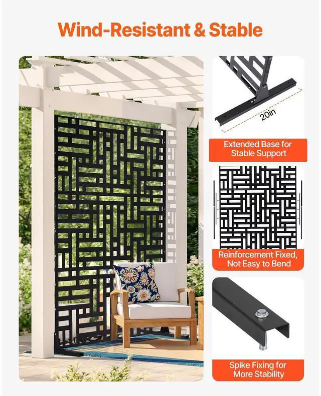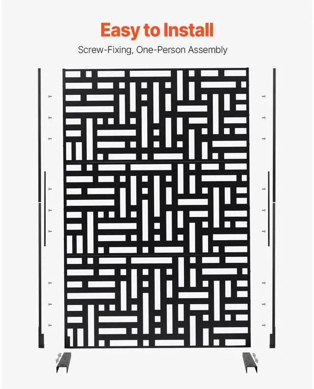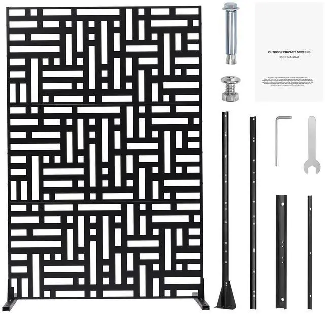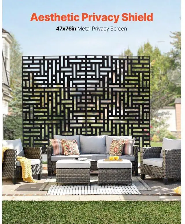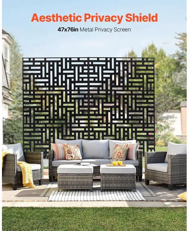 Metal Privacy Screen 47" x 76" Outdoor Privacy Screens & Panels for Patio Black