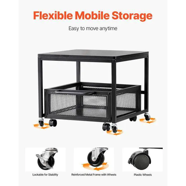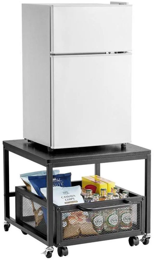 Mini Fridge Stand with Storage 198lbs Storage Cart & Swivel Wheels Black