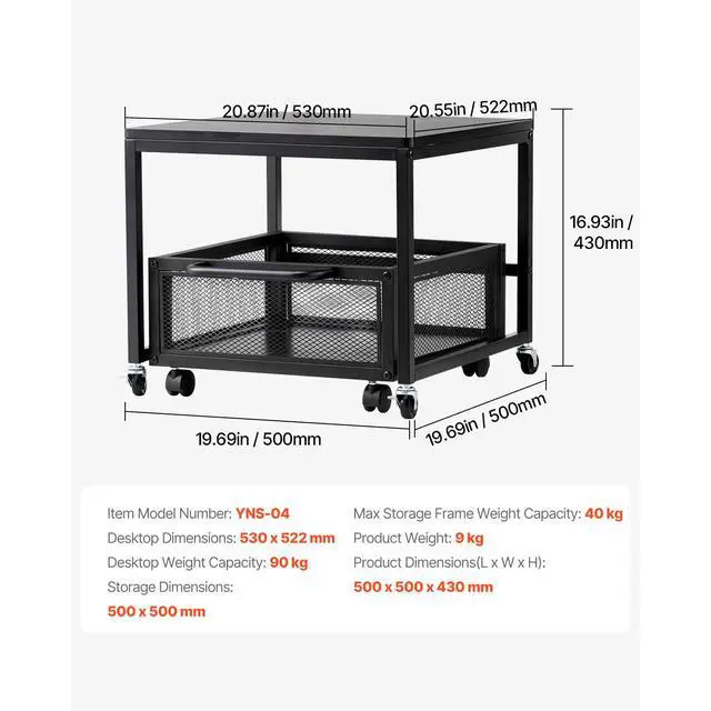 Desktop Dimensions: 530 x 522 mm,Max Storage Frame Weight Capacity: 40 kg,Item Model Number: YNS-04,Product Weight: 9 kg,Storage Dimensions: 500 x 500 mm,Product Dimensions (L x W x H): 500 x 500 x 430 mm,Desktop Weight Capacity: 90 kg