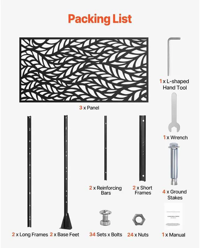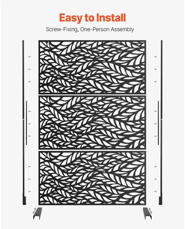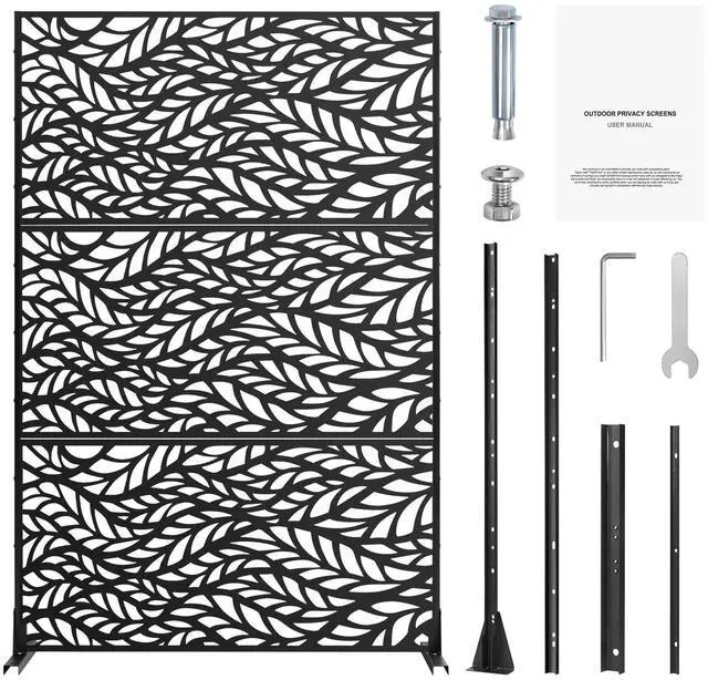 Metal Privacy Screen 47" x 72" Outdoor Privacy Screens & Panels for Patio Black
