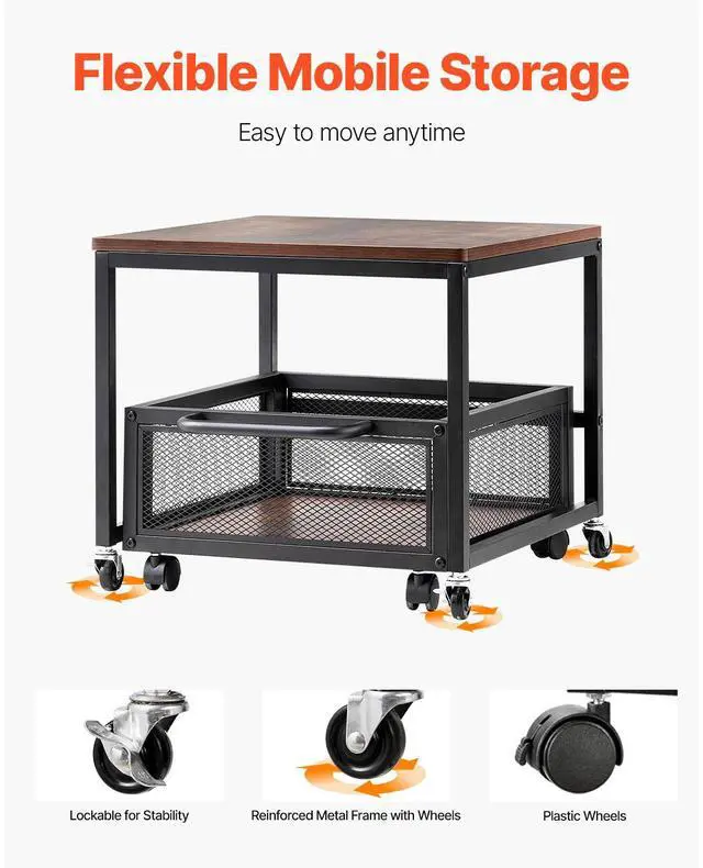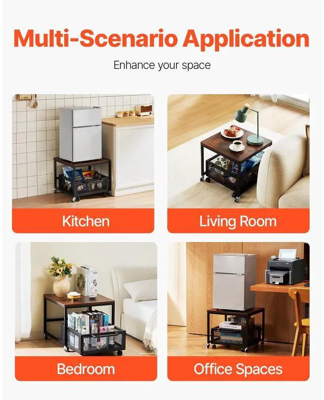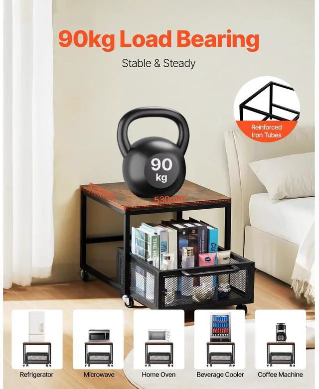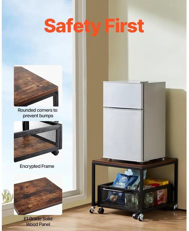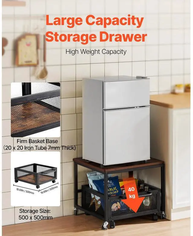 Mini Fridge Stand 198lbs with Storage Cart & Swivel Wheels Dark Brown