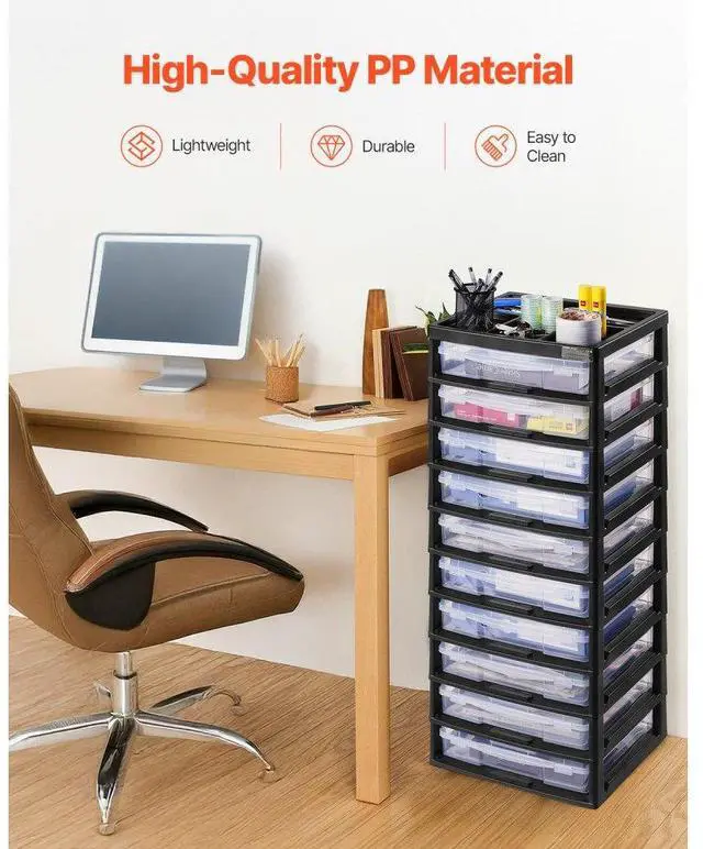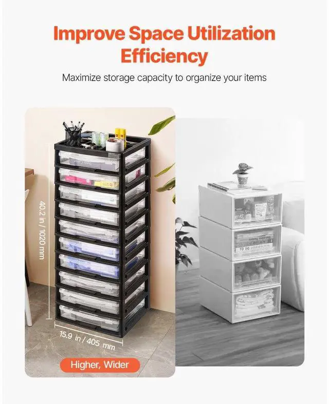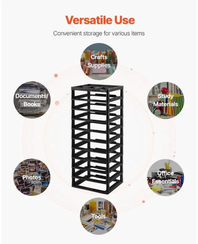 Plastic Storage Organizer 10-Tier Large Capacity with Organizer Top Black Frame