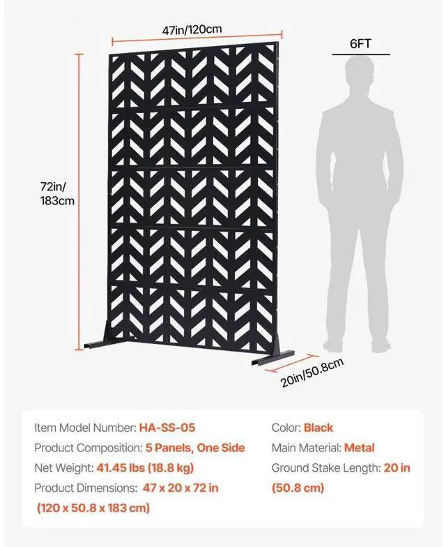 Color: Black,Item Model Number: HA-SS-05,Ground Stake Length: 20 in (50.8 cm),Product Composition: 5 Panels, One Side,Product Dimensions: 47 x 20 x 72 in (120 x 50.8 x 183 cm),Net Weight: 41.45 lbs (18.8 kg),Main Material: Metal