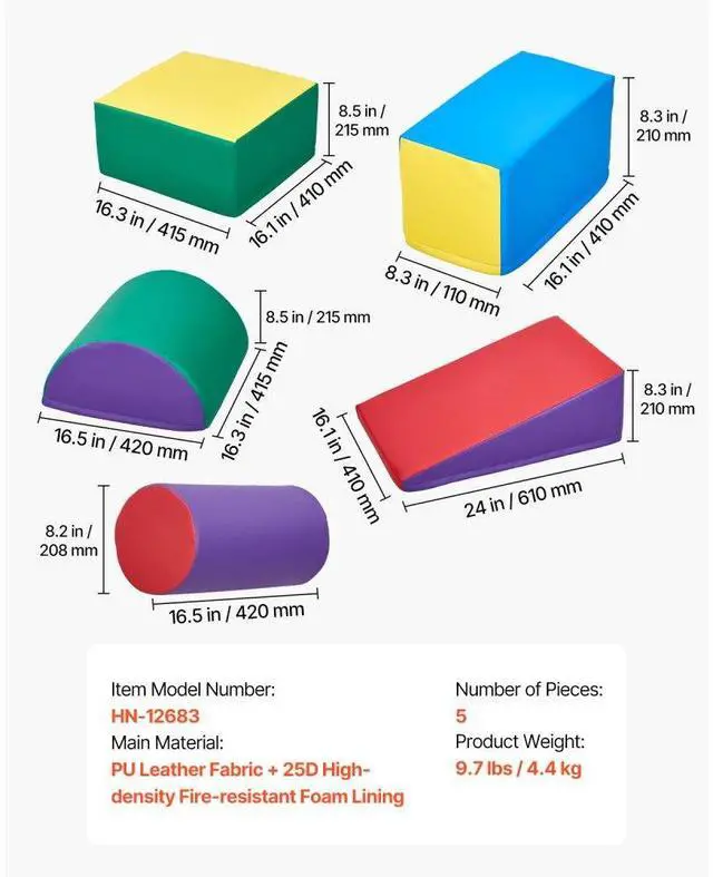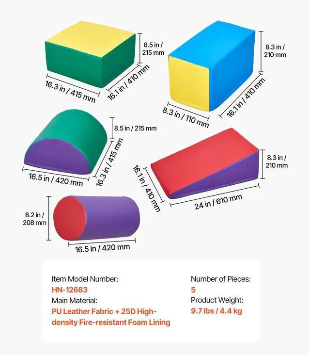 Climbing Toys 5 Piece Foam Climbing Blocks Set for Toddlers and Preschoolers
