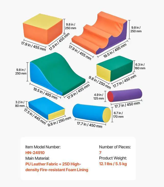 Climbing Toys 7 Piece Foam Climbing Blocks Set for Toddlers and Preschoolers