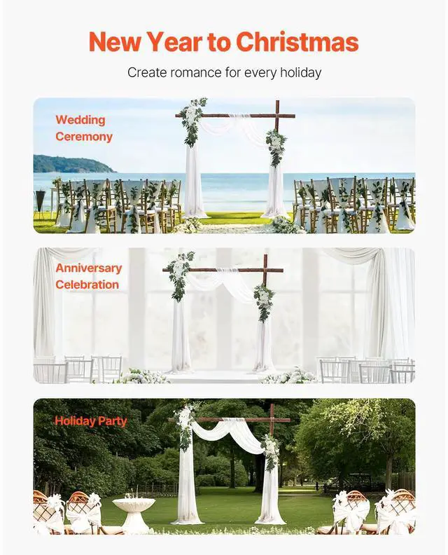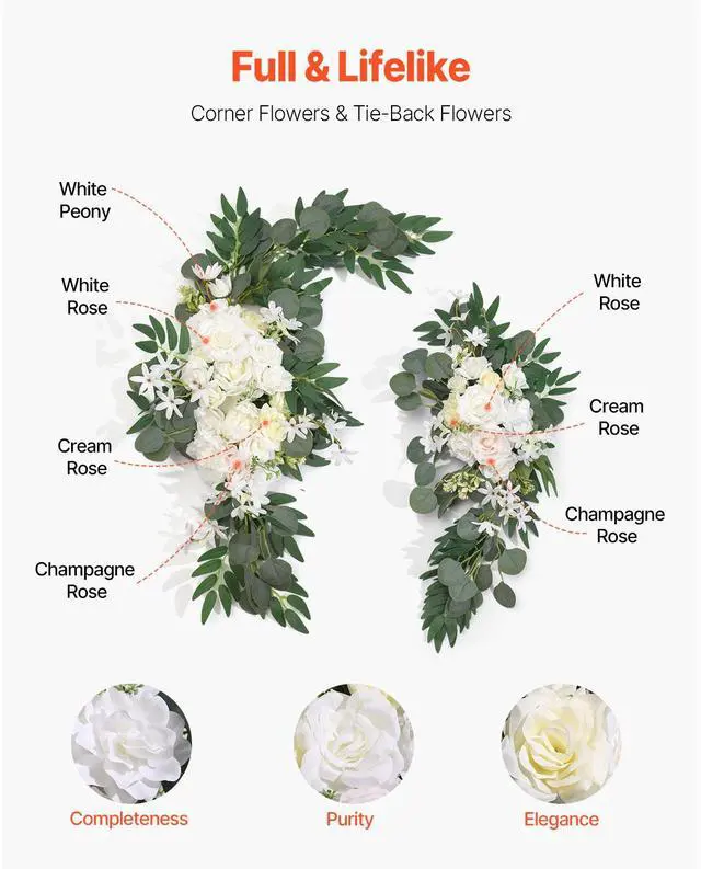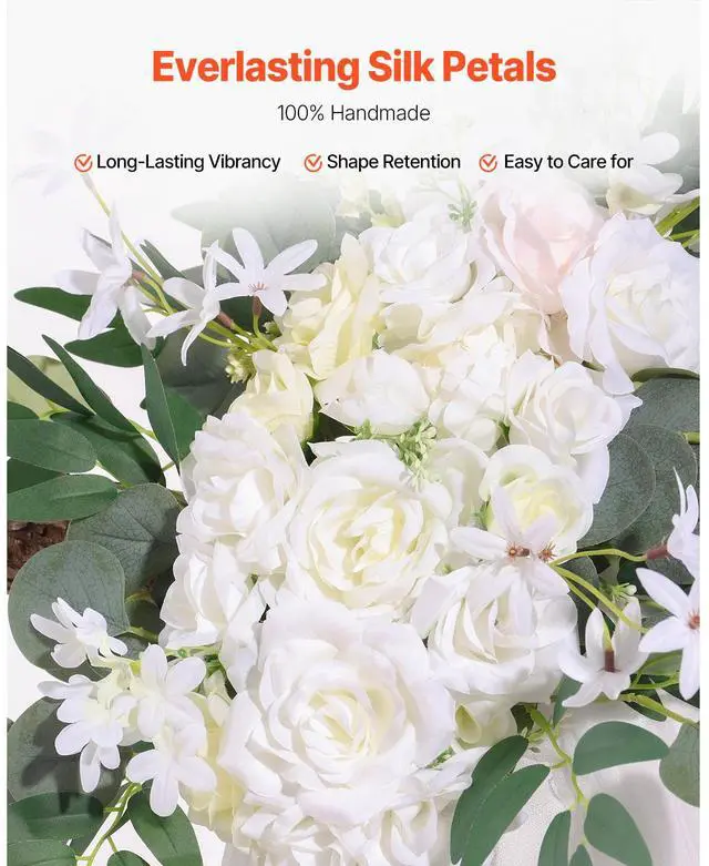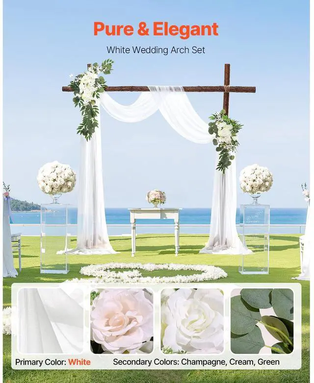 VEVOR Artificial Wedding Arch Flowers Kit (Pack of 3) with 21Ft Wedding Arch Draping Fabric,Arch Flowers for Wedding Ceremony and Reception Backdrop Wedding Decoration (White)