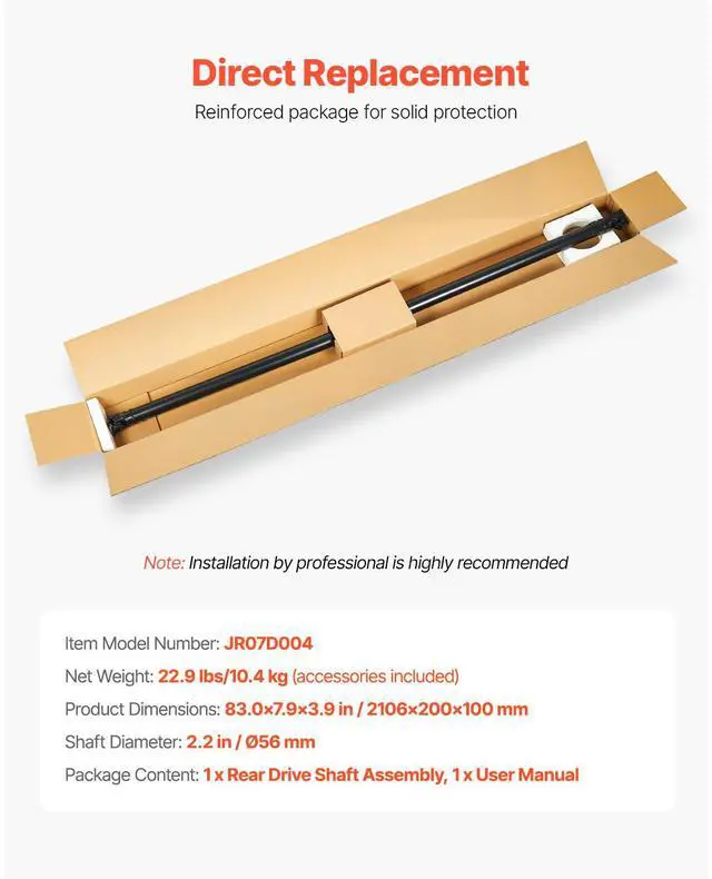 Item Model Number: JR07D004,Shaft Diameter: Ø2.2 in / 56 mm,Product Dimensions: 83.0-84.1 x 7.9 x 3.9 in / 2106-2136 x 200 x 100 mm,Net Weight: 22.9 lbs / 10.4 kg (accessories included)