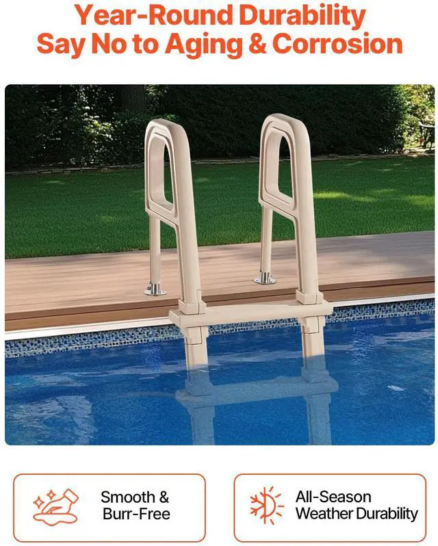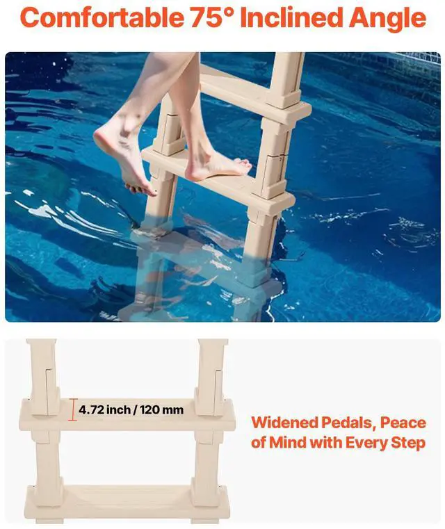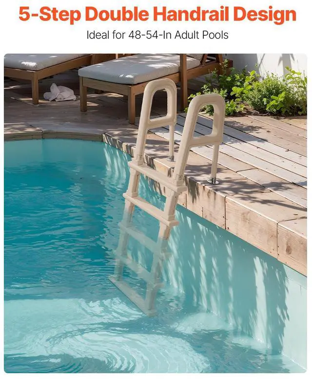 Inclined Pool Ladder 5-Step & 2 Handrails of 300 lb Capacity for 48-54 In Pools