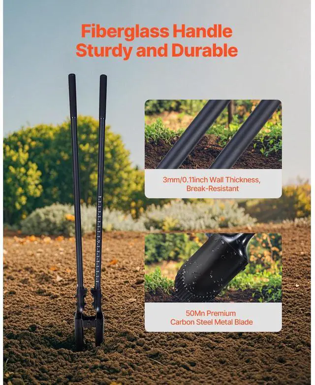 Post Hole Digger with Fiberglass Handle Scale Markings 57.5" Manual Hole Digger